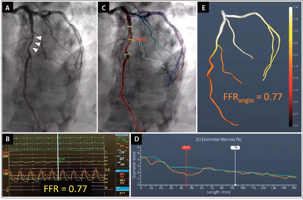 L’évaluation précise de la sévérité fonctionnelle des sténoses coronariennes est un enjeu clinique majeur dans la prise en charge des maladies coronariennes. La Fractional Flow Reserve (FFR), mesurée de manière invasive lors de la coronarographie, reste la référence pour différencier les lésions coronaires significatives des sténoses non critiques. Toutefois, cette méthode invasive comporte des risques, des coûts élevés, et un accès limité à certains patients.